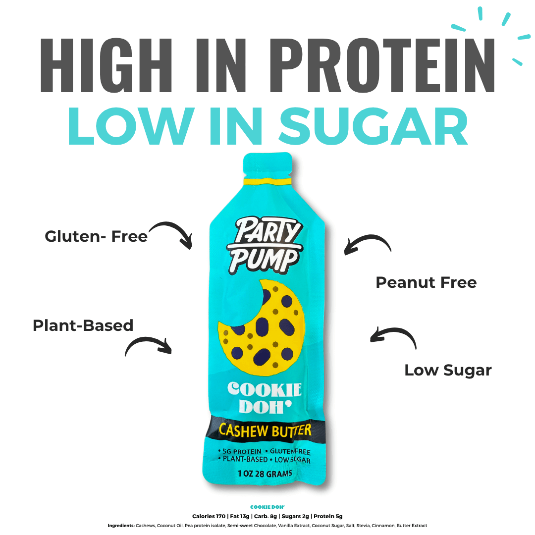 Ingredients: Cashews, Coconut Oil, Pea protein isolate, Semi-sweet Chocolate, Vanilla Extract, Coconut Sugar, Salt, Stevia, Cinnamon, Butter Extract